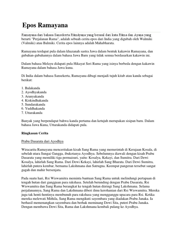 untuk "Ringkasan Cerita Rama Lan Sinta Dalam Bahasa Jawa / Cerita Ramayana Bahasa Jawa Singkat Rasanya : Cerita epos liyané yaiku mahabharata."
