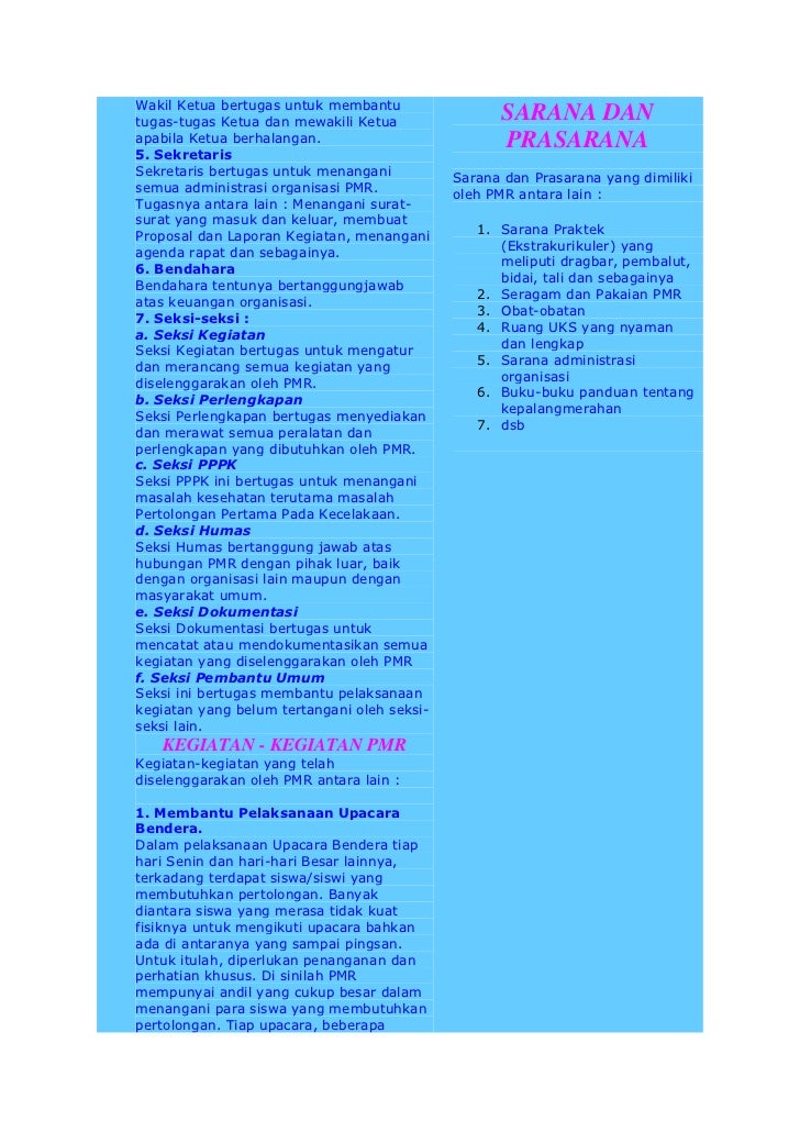 untuk "Tujuan Masuk Pmr - Contoh Program Kerja Pmr Palang Merah Remaja Materi Tugas Tugas / Pmr dan upsr mungkin dijadikan sebagai penilaian pencapaian pelajar di peringkat sekolah sahaja, dan bukannya sebagai peperiksaan awam."